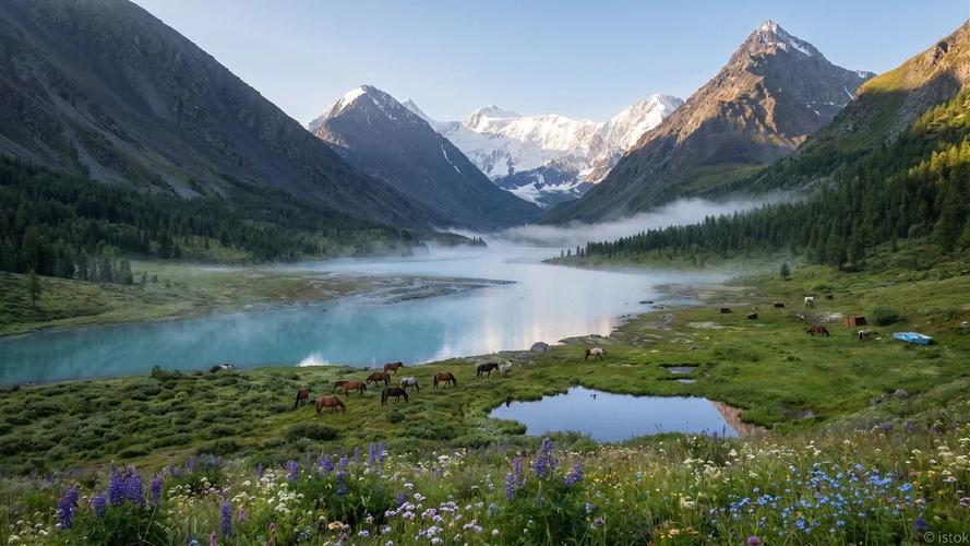 По пути к этому красивому уголку мы сделаем остановку, чтобы полюбоваться великолепием Северо-Чуйского белоснежного хребта. Этот массив — один из самых высоких на Алтае и часть величественного горного ансамбля. Протяженность хребта составляет около 100 километров, а его высота достигает 4000 метров над уровнем моря. Величественные вершины, укрытые ледниками, создают поразительный контраст с яркими цветами низменностей. Фотографии на фоне такого великолепия сделают ваш альбом поистине незабываемым — это идеальное место для фотографий!